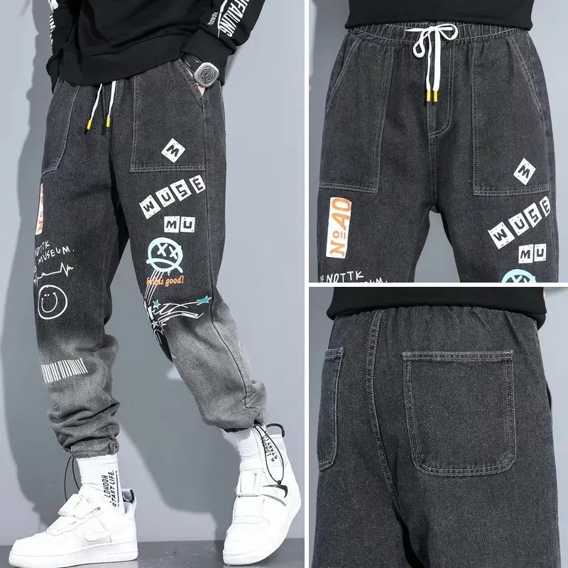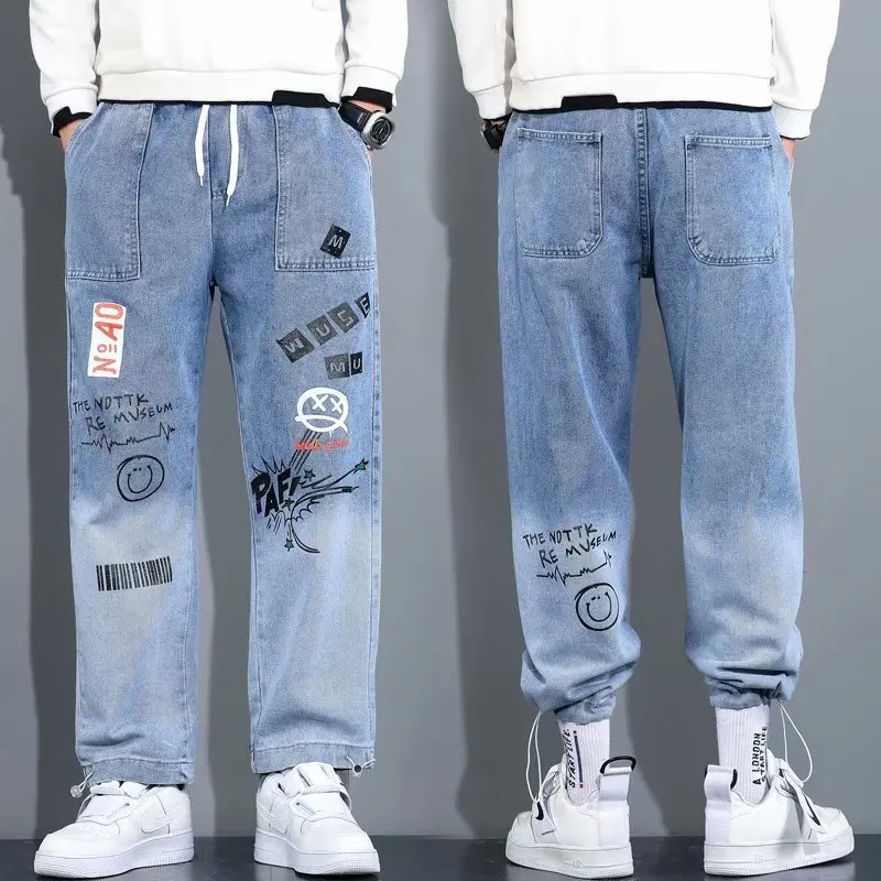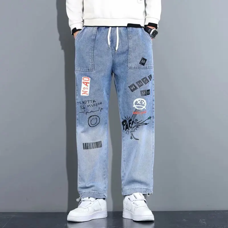 Джинсы HOUZHOU мужские с завышенной талией, синие мешковатые брюки ...