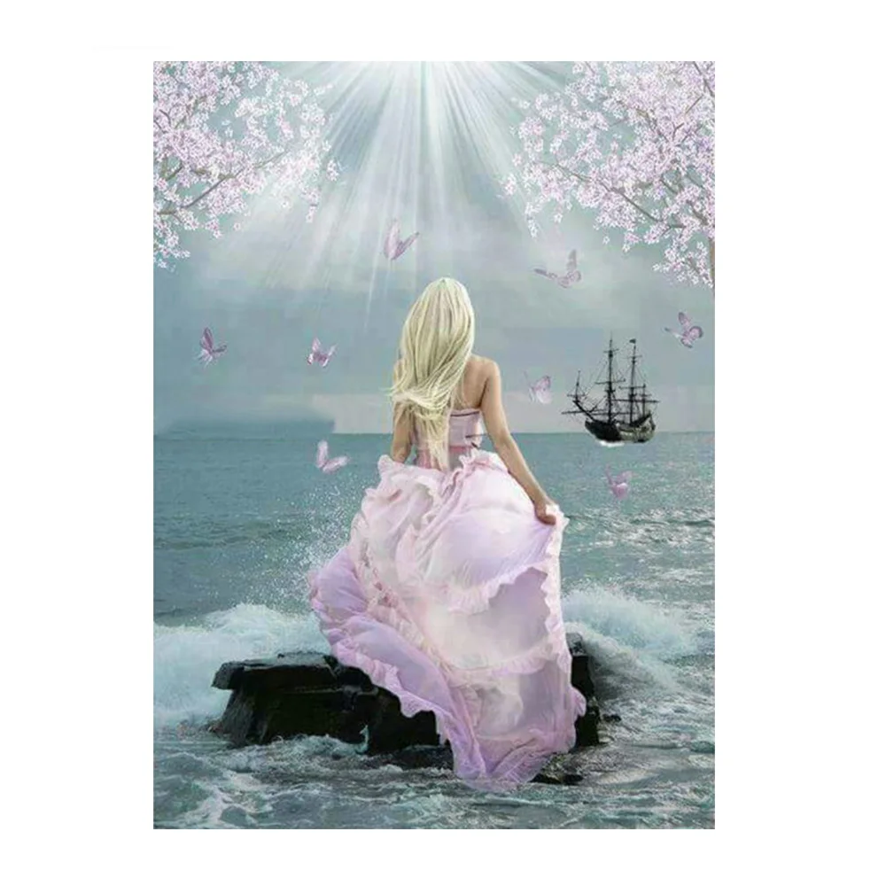 Полноразмерные 5D картины из страз сделай сам, вышивка крестиком Женщина и море, 3D Алмазные картины, круглые стразы, алмазная живопись, вышивка людьми