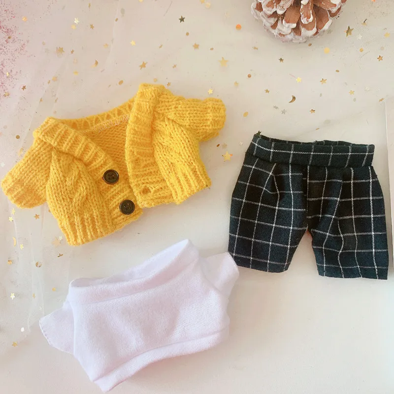 Одежда для куклы плюшевая, комплект желтых свитеров и брюк подходит для куклы плюшевой формы 20 см8 дюймов или шарнирной куклы 16, милая Одежда для куклы плюшевой расцветки