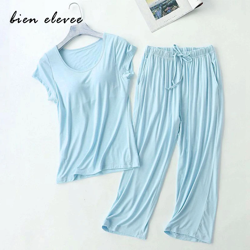 Комплект пижамный женский из модала, Комплект пижамный большого размера с коротким рукавом, комплект из двух предметов, домашняя одежда, свободная мягкая хлопковая одежда для сна