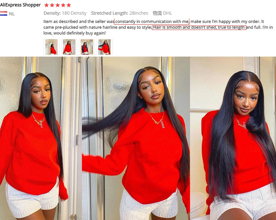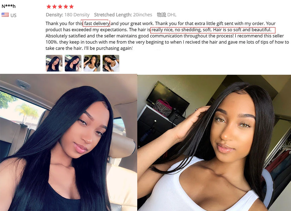 Доставка была немного смешана, с перевозчиком, и мои волосы не были в наличии, и этот поставщик автоматически сказал мне и дал мне новую длину с 180% плотностью бесплатно. Обязательно буду заказывать снова!