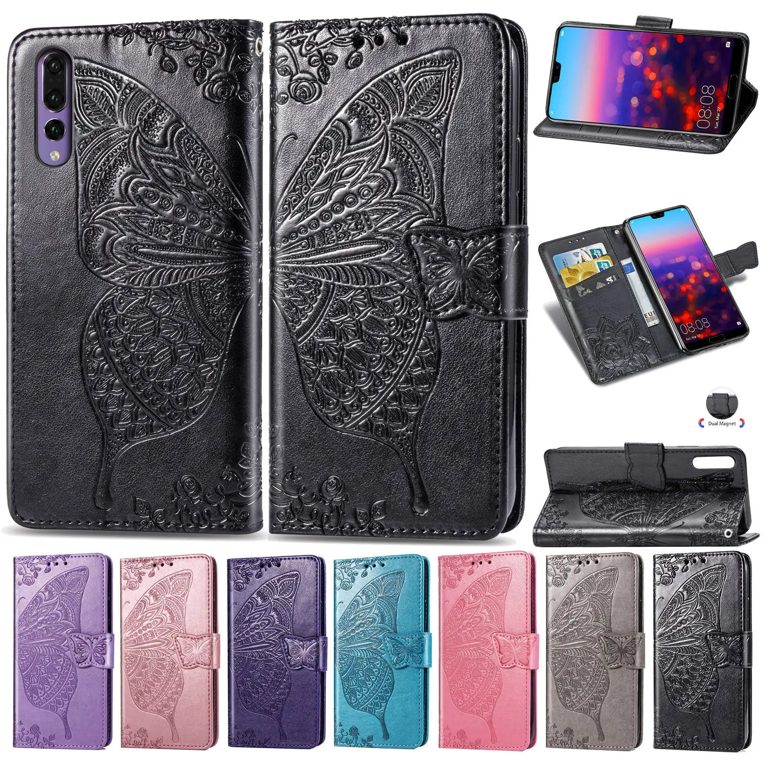 Милый чехол с бабочкой для Huawei P20 Pro (6,1 дюйма) HW-01K кожаный чехол-книжка с кошельком черная сумка для телефона P20Pro HW01K HuaweiP20 +
