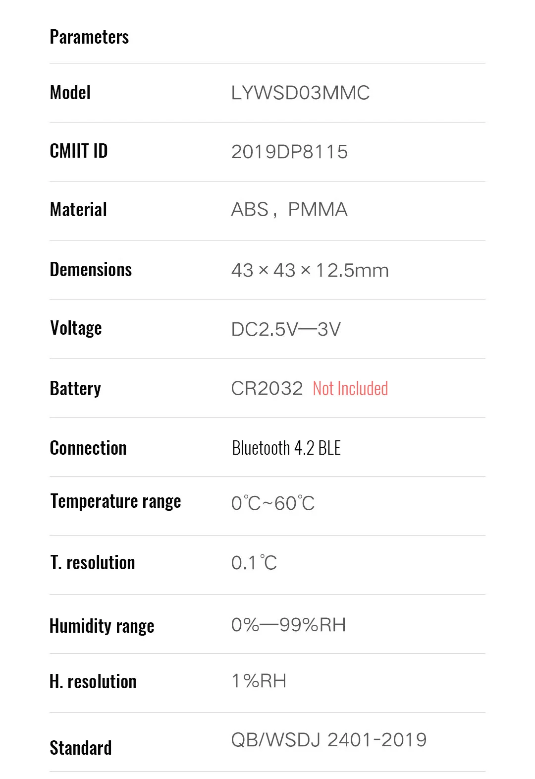 * Аккумулятор кнопки CR2032 используется, и Время в режиме ожидания-это время, когда приложение не подключено. При фактическом использовании могут быть ошибки в зависимости от объективной среды, и это только для справки.