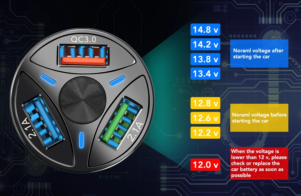 Автомобильное USB-зарядное устройство Quick Charge с 3 портами для ...