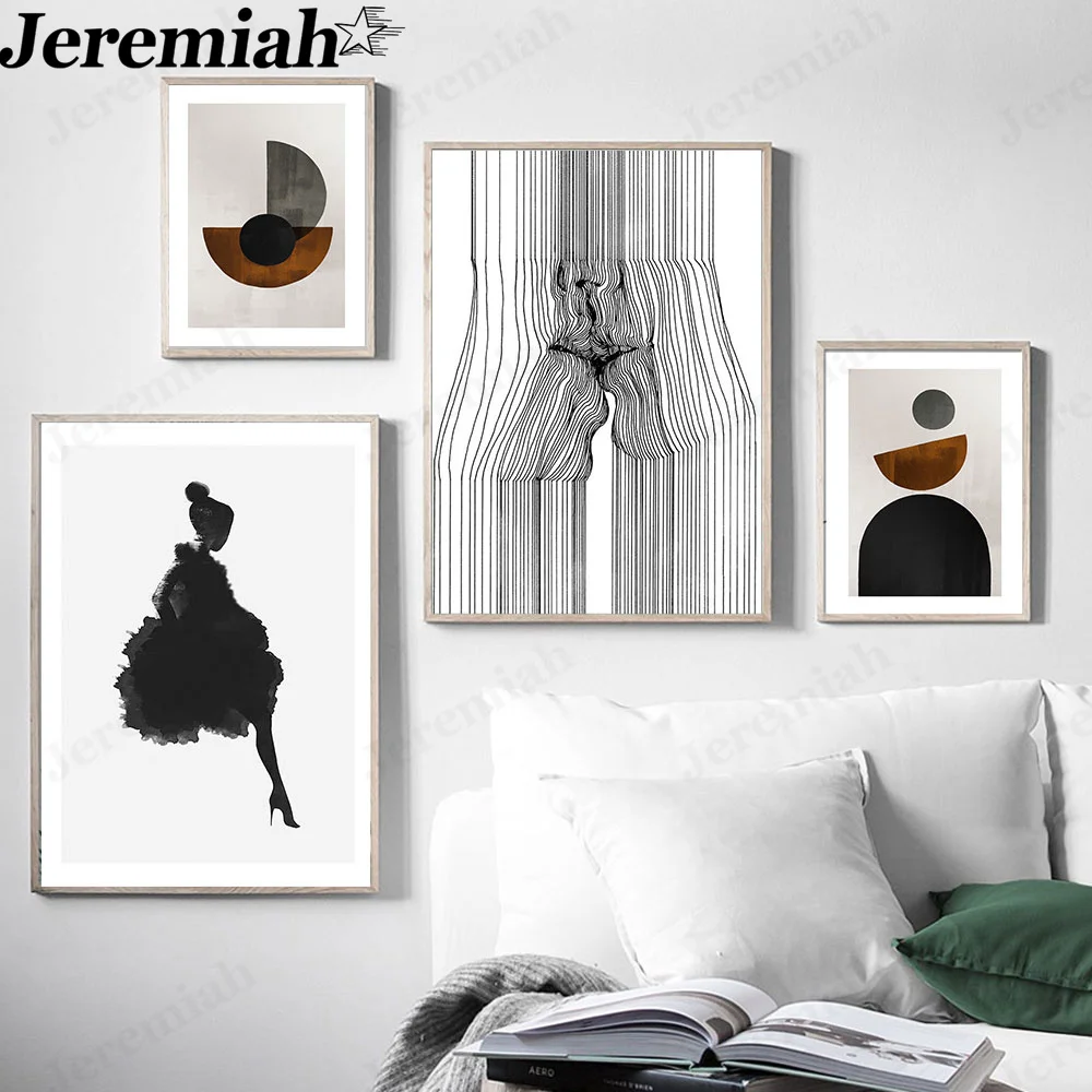 Современный черно-белый холщовый плакат с принтом, настенное искусс...