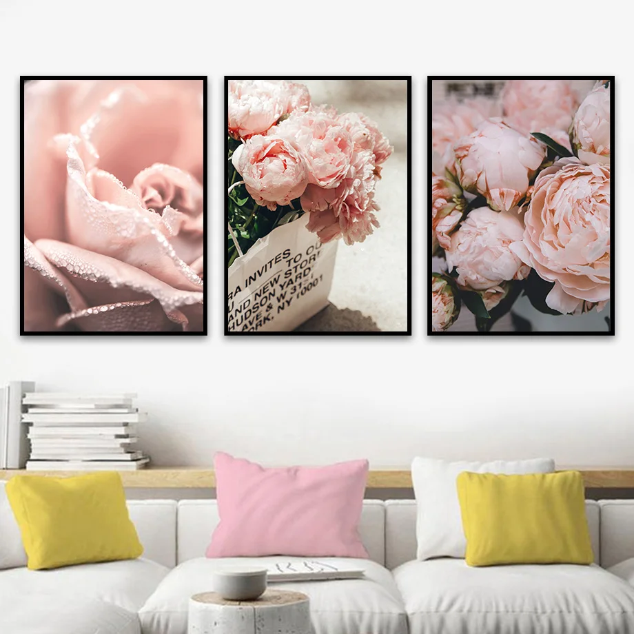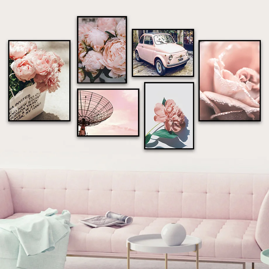 Настенные картины с изображением розовых цветов, пляжа, дома, двери...