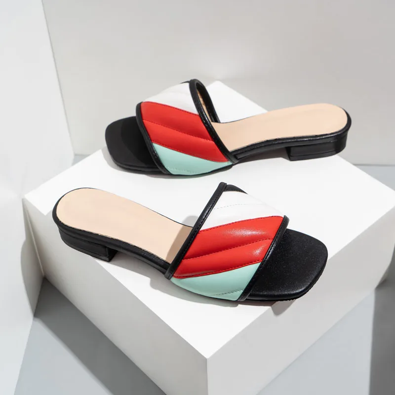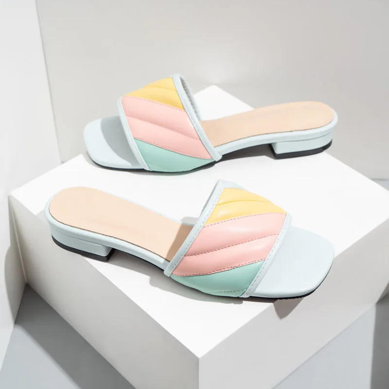 Сланцы женские на низком толстом каблуке, шлепанцы, пляжная обувь, большие размеры 41 42