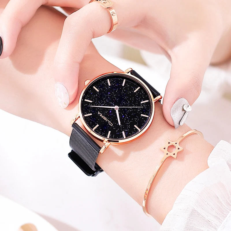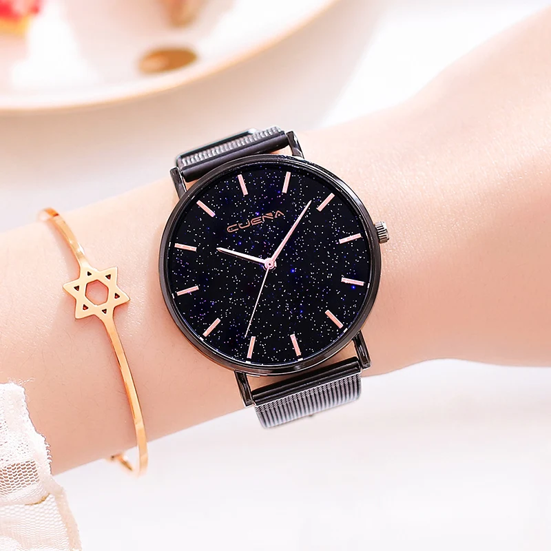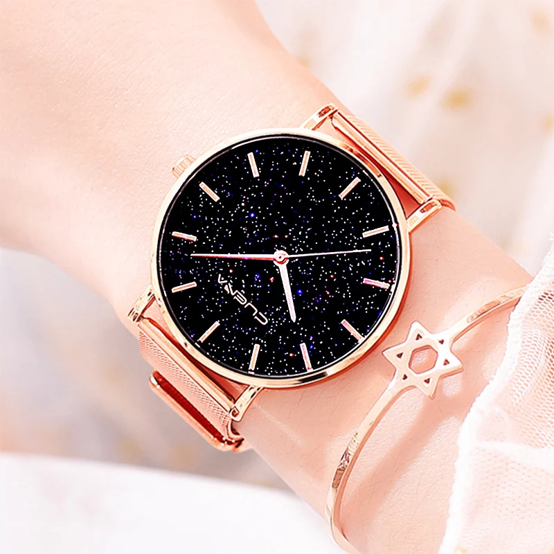 Часы женские из нержавеющей стали под розовое золото со звездным небом, 2021