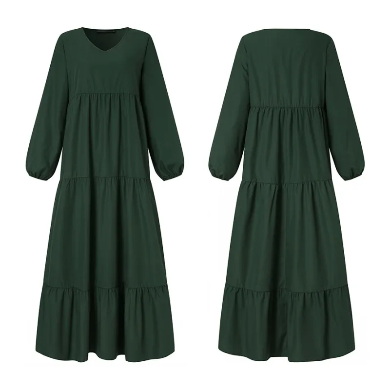 Посылка включает в себя: 1 платьеМатериал: 80% полиэстер + 20% хлопокЦвета: черный, зеленый, винно-красныйРазмер: S,M,L,XL,2XL,Длина рукава: длинный рукавВырез: круглый вырезРисунок: однотонныйДлина: до щиколоткиТолщина: тонкаяОсобенности: эластичные манжеты, дизайн с прострочкойСтиль: свободное, богемное, ретро, Европейское, многослойное платье, литератураСезон: весна, осень, зимаПовод: Семейные, вечерние, пляжные, свадебные, праздничные, рабочие