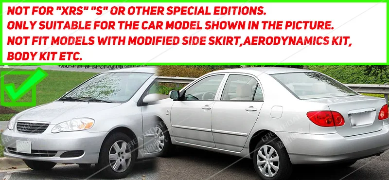 Применимость: международная версия:Для Toyota Corolla AE120 4-dr Sedan 2002-2008, только модели девятого поколения!Версия Северной Америки:Для Toyota Corolla 4-dr Sedan 2003-2008, только модели девятого поколения!Не подходит для моделей «XRS» или «S»