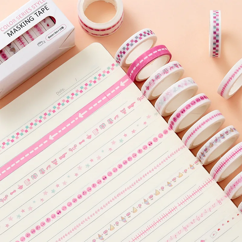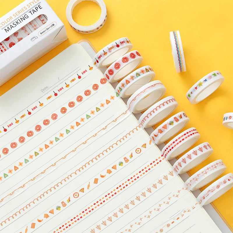 Клейкая лента для скрапбукинга, 10 шт.компл., радужные цвета, 8 мм х 300 см