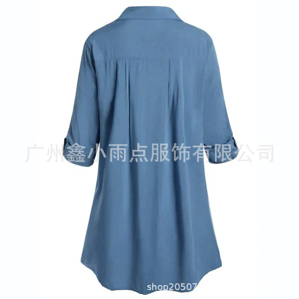 Блузка женская джинсовая с длинным рукавом, элегантная рубашка из д...