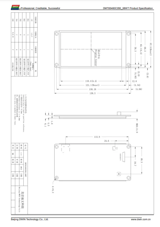 、 Описание продукта --- DMT85480C050_06WT (ЖК-модуль)