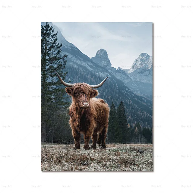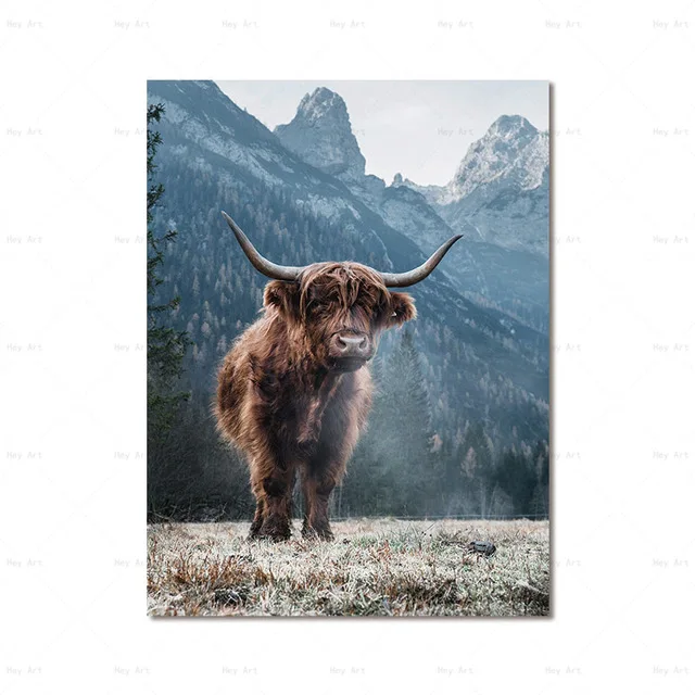 Абстрактная картина на стену пейзаж картины горы и крупного рогатого скота скандинавские плакаты и принты для гостиной спальни коридора украшение