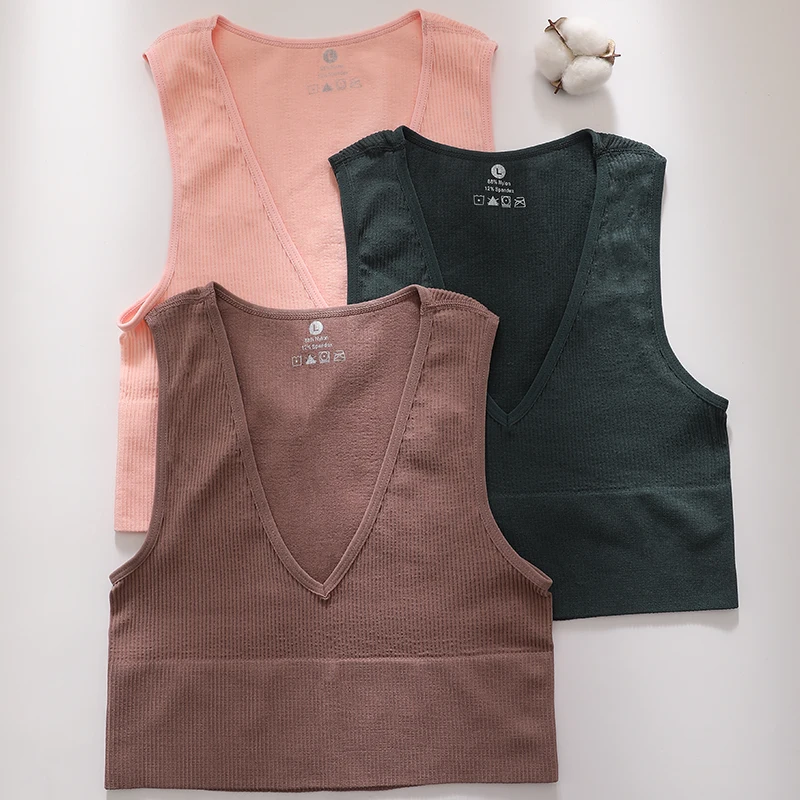 Топ женский, бесшовный, с глубоким V-образным вырезом