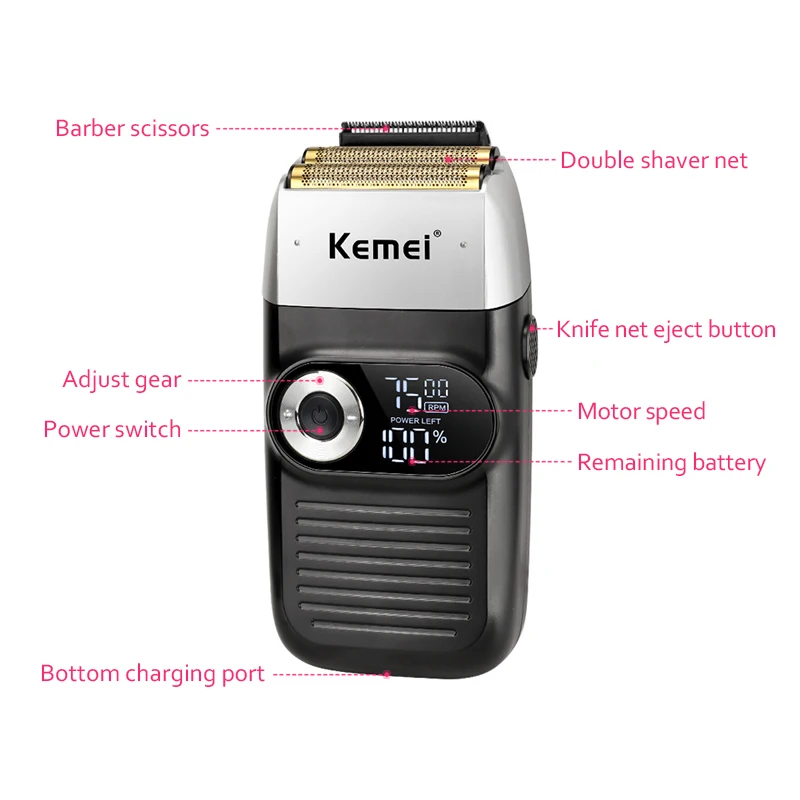 Профессиональная электробритва Kemei для мужчин, устройство для бритья, шейпер, головки из фольги, ЖК-дисплей, вращающийся мотор