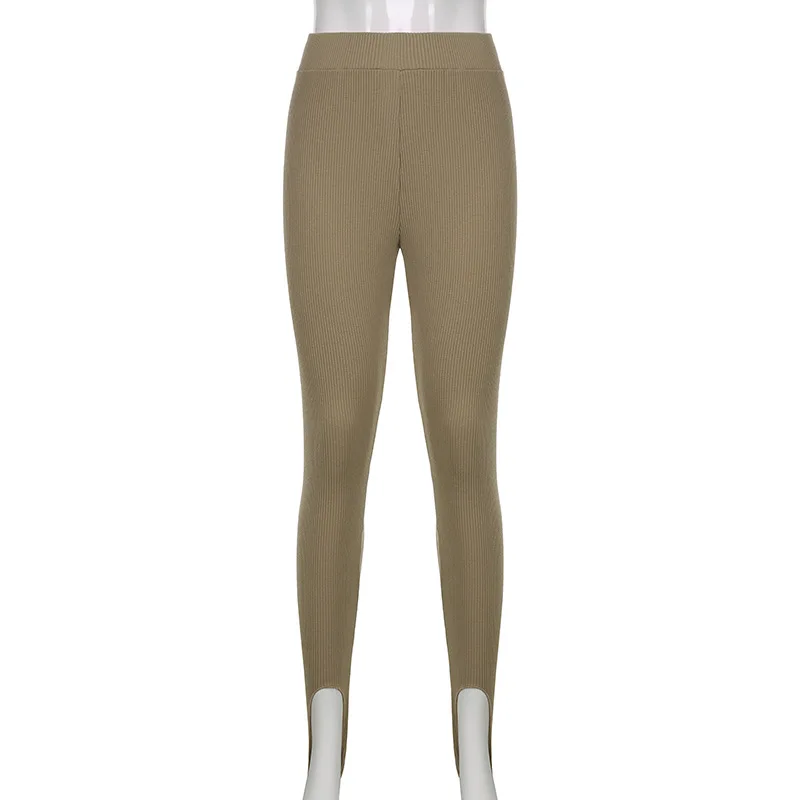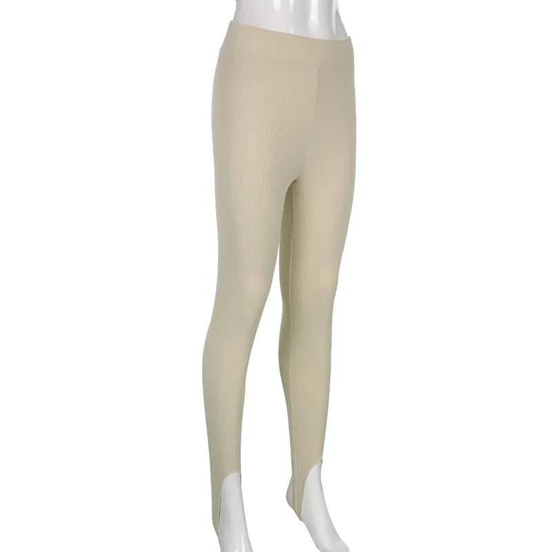 Tossy бежевые ребристые трикотажные леггинсы для женщин с высокой талией, хлопковые базовые штаны для фитнеса, повседневные Весенние Новые Универсальные женские обтягивающие леггинсы