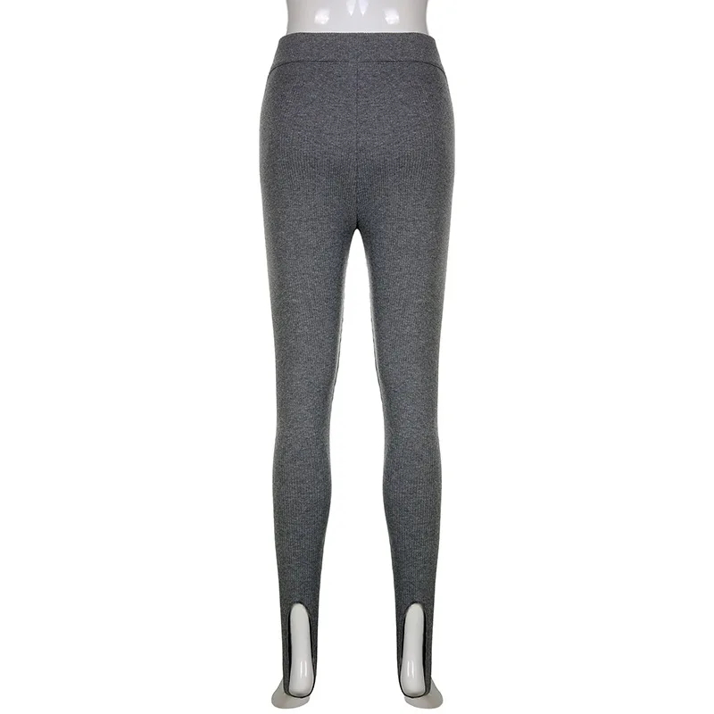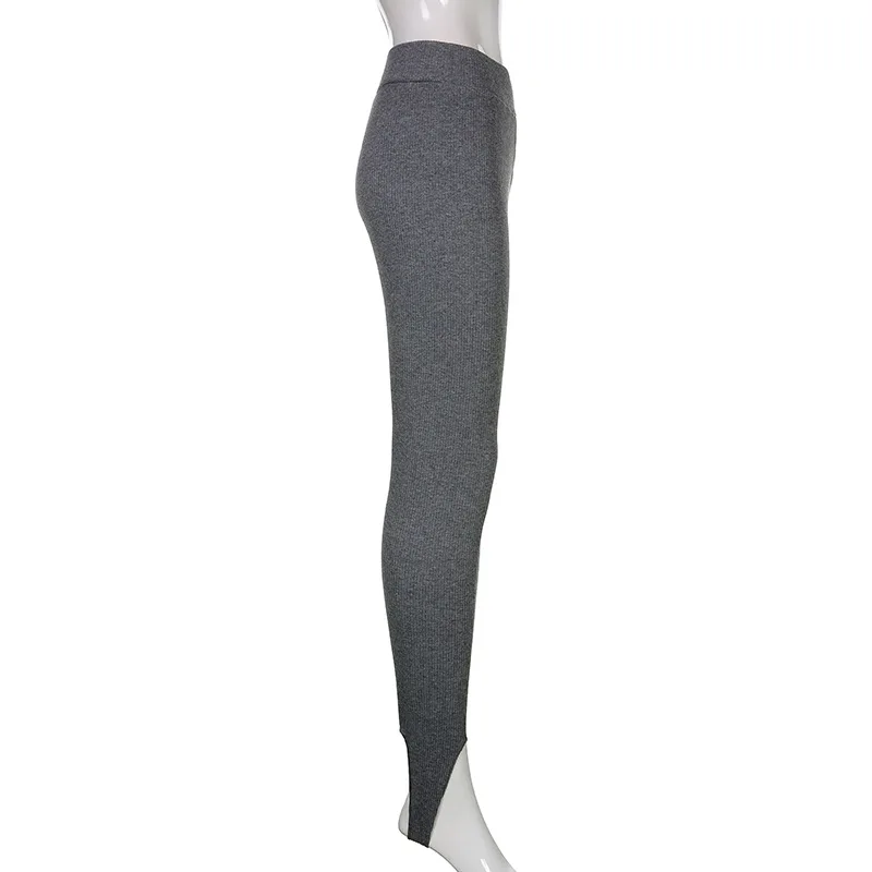 Женские трикотажные леггинсы в рубчик, с высокой талией