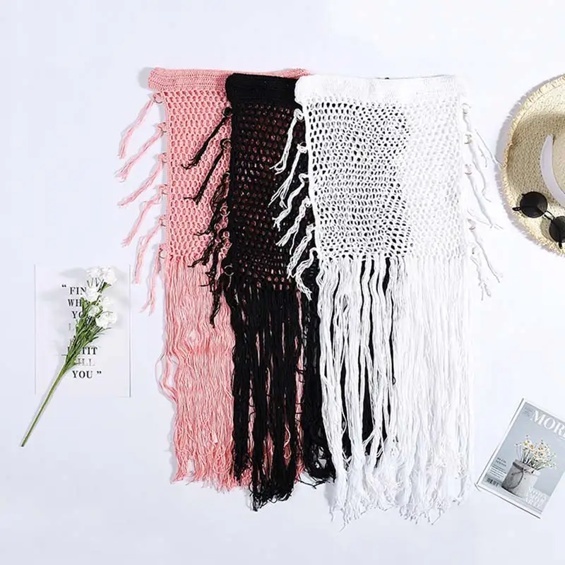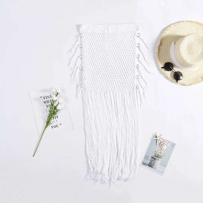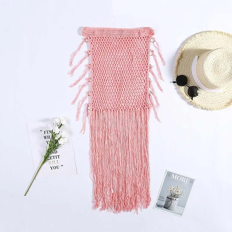 Вязаное вручную платье с запахом, Солнцезащитная юбка, богемное ажурное длинное платье с бахромой, накидки
