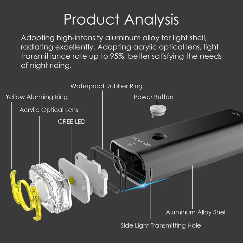 1) Высокая яркость лмВ V9C800 используется светодисветодиодный CREE XPL с высокой яркостью 800 люмен, 5 переключаемых передач, светильник более 200 метров, что делает вашу ночную езду намного ярче и безопаснее.2) Угол прожектора 85 градусов:Угол прожектора 85 градусов расширяет кругозор при езде.3) акриловая оптическая линза:Коэффициент пропускасветильник может достигать 90%, что лучше удовлетворит ваши потребности в ночной езде.4) Перезаряжаемый через USB + Время Работы 18 часов:Встроенный аккумулятор 18650 2500 мАч, самое продолжительное время работы может составлять около 18 часов.5) IPX6 Водонепроницаемый:Используйте Силиконовое водонепроницаемое кольцо для кнопки питания и USB-порта для зарядки, что обеспечивает нормальную езду на велосипеде в дождливые и бурные дни.