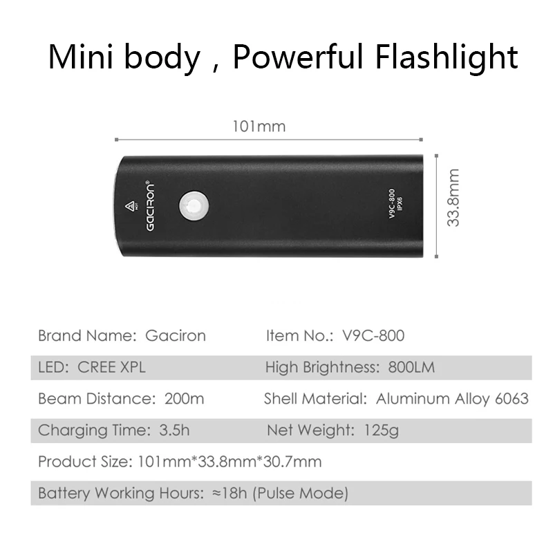 Передсветильник фонасветильник для горного велосипеда GACIRON, V9C-800 лм, водонепроницаемая, IPX6