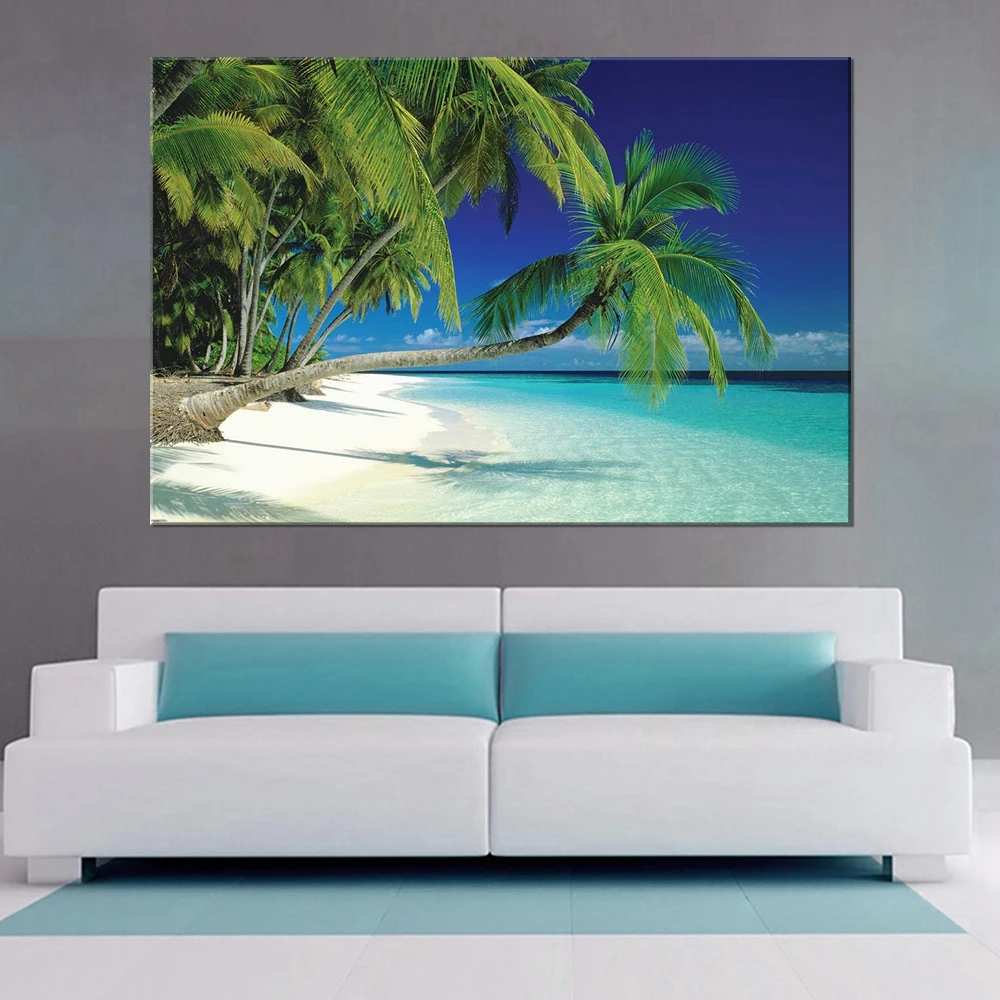 Постер на холсте для домашнего декора, 1 шт., закат, пляж, дерево, ...