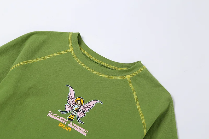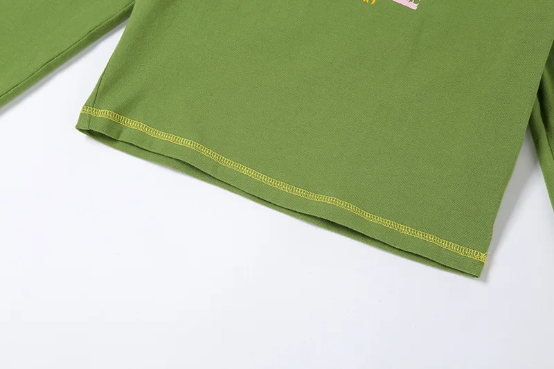 Y2Kмилые зеленые топы с рисунком и надписью в стиле E-girl, облегающие короткие футболки с круглым вырезом и длинными рукавами, футболка