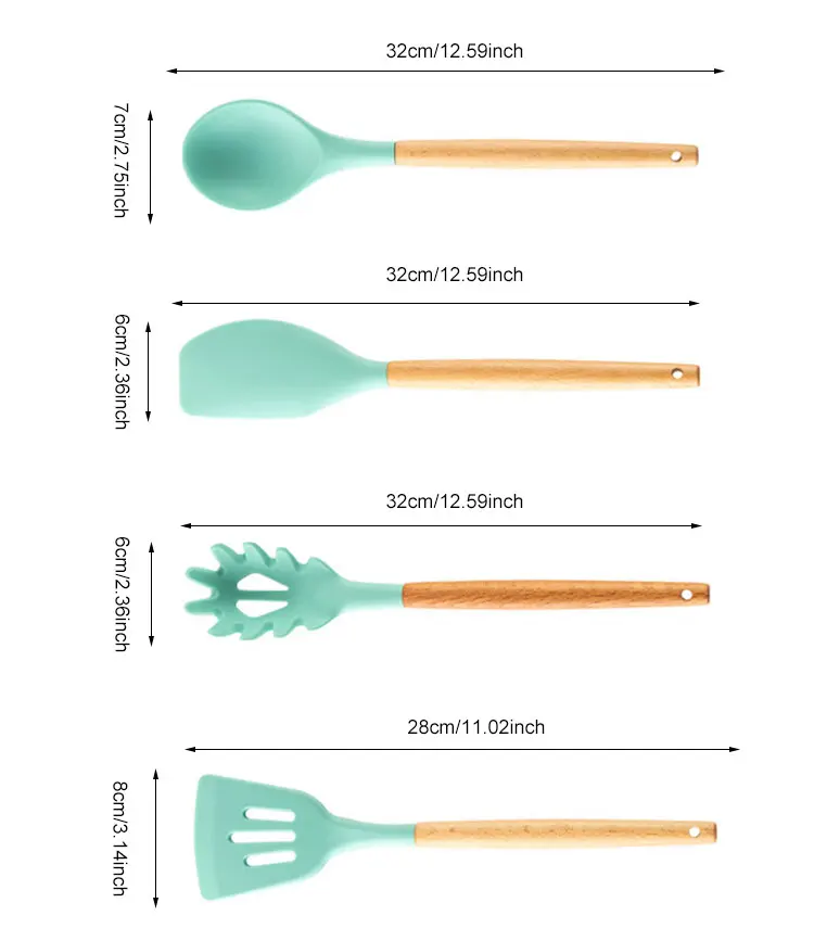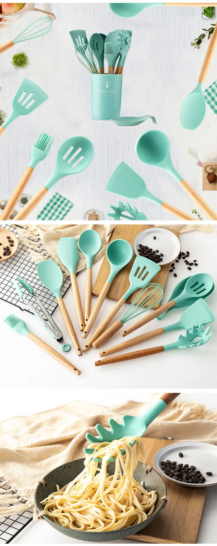 Набор инструментов кухонные приборы из зеленого силикона, с деревян...