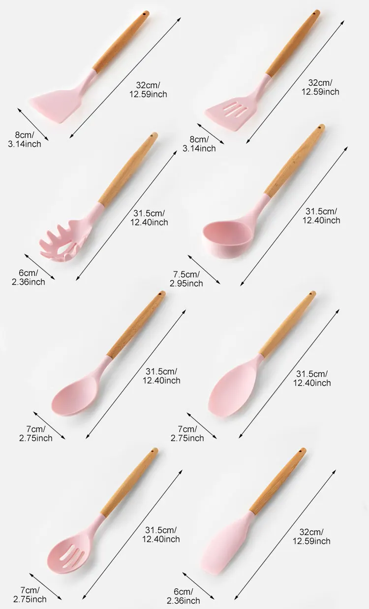11 шт.компл. 9 шт.компл. розовая силиконовая кухонная утварь с дере...