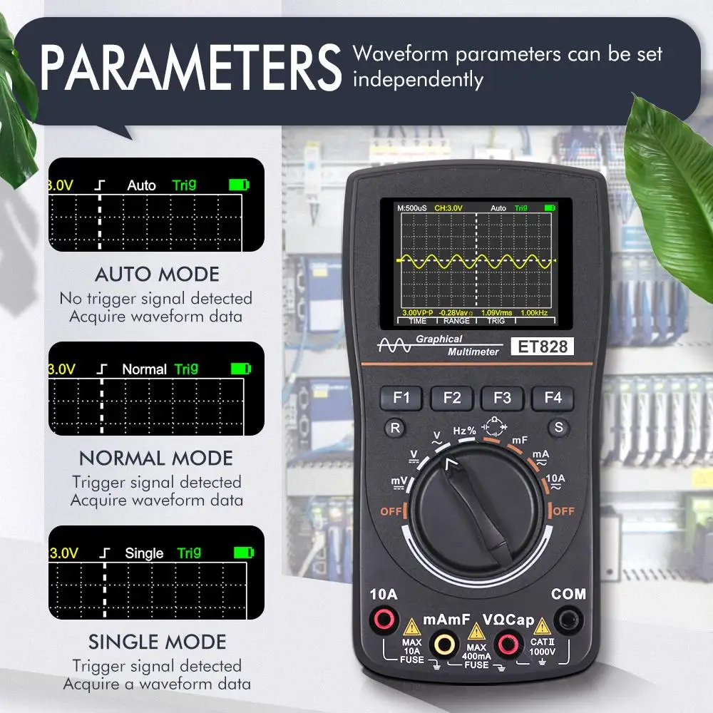 Et828 интеллектуальный цифровой осциллограф с автоматическим выбором диапазона, графический мультиметр, экран 2,4 дюйма, 1 МГц, 2,5 Мбитс, форма волны для электронных испытаний
