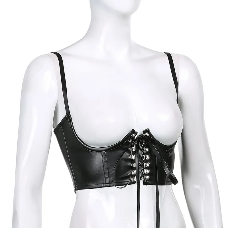 S-L женский жилет с поддержкой груди, облегающая блузка из искусственной кожи с металлической пряжкой на шнуровке, Топ для женщин