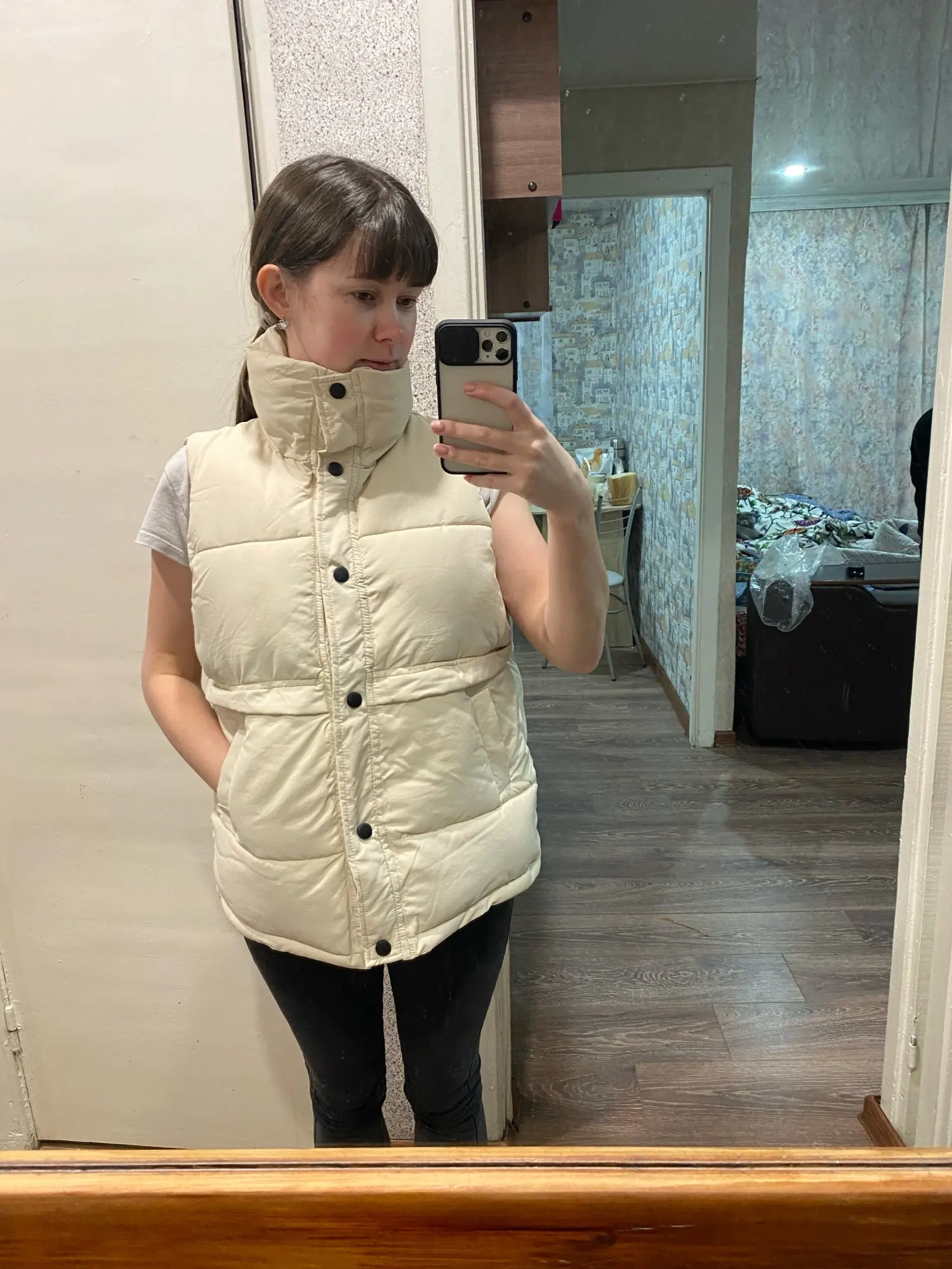 Брала по таблице размеров, чтобы был oversize на пару размеров. Но в действительности размер получился как раз. Жилетка ничего, но не такая дутая и теплая как выглядит на фото.