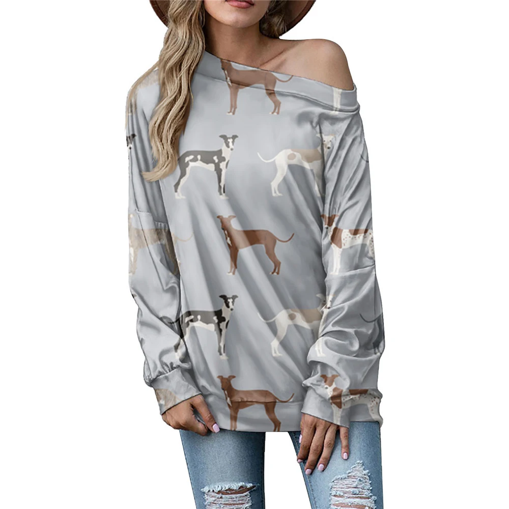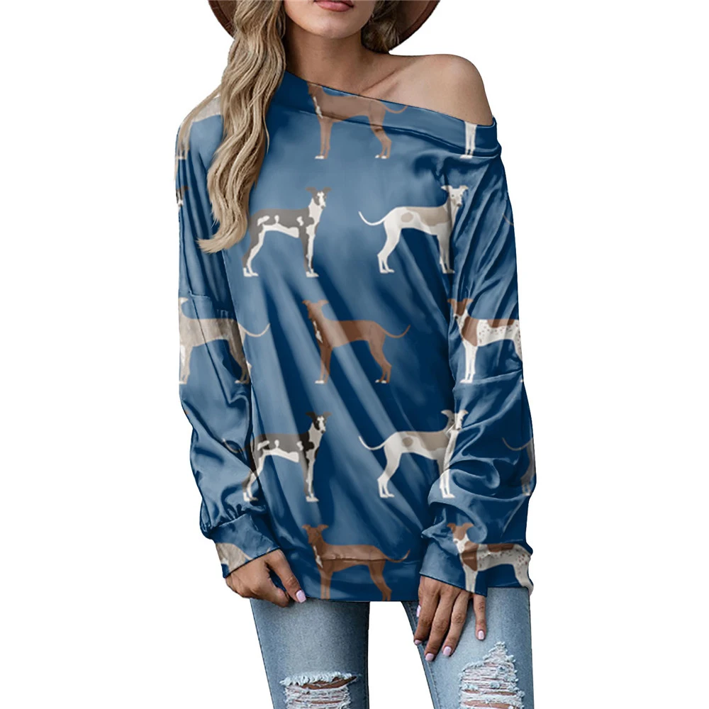 Футболка женская на одно плечо, с принтом Борзых, размера плюс