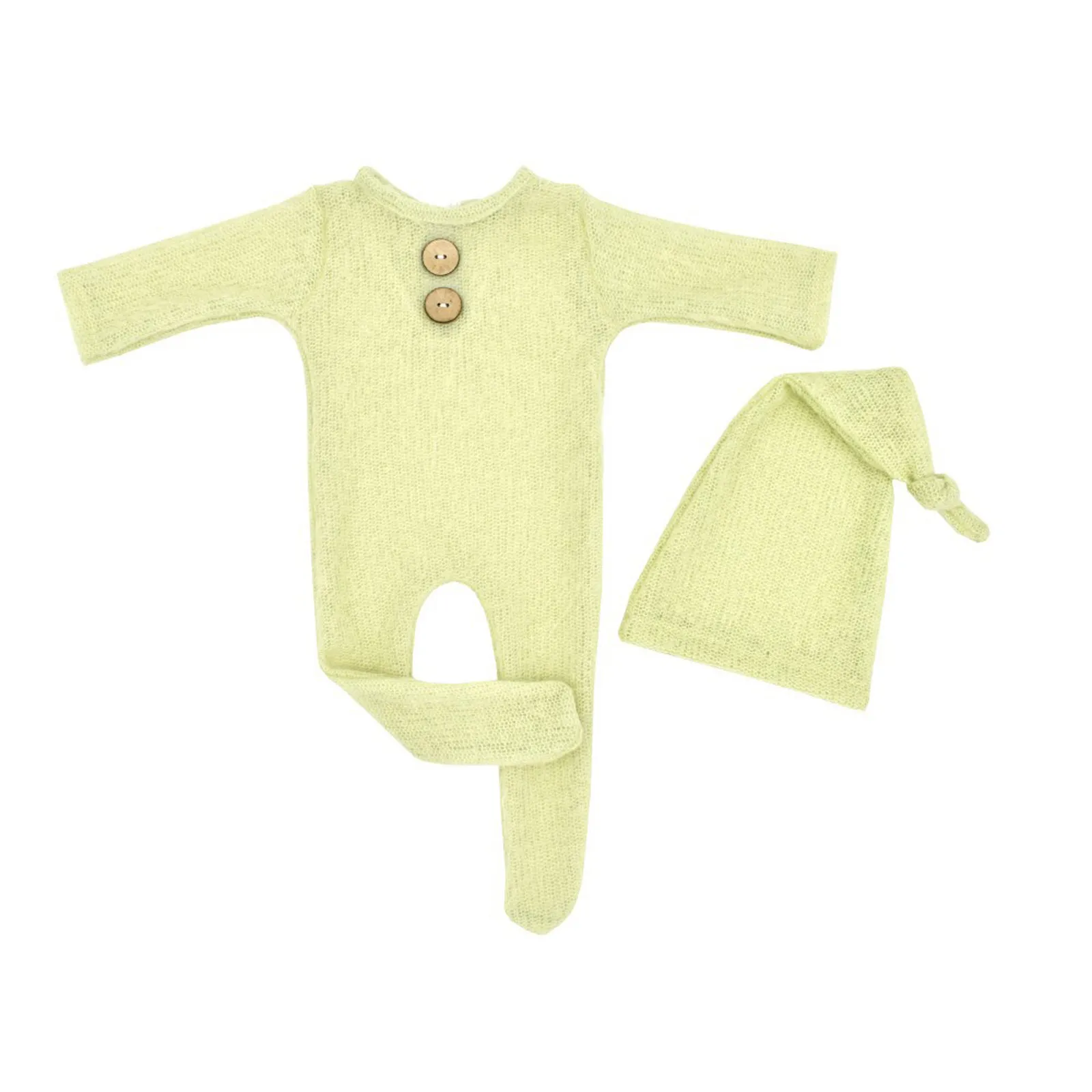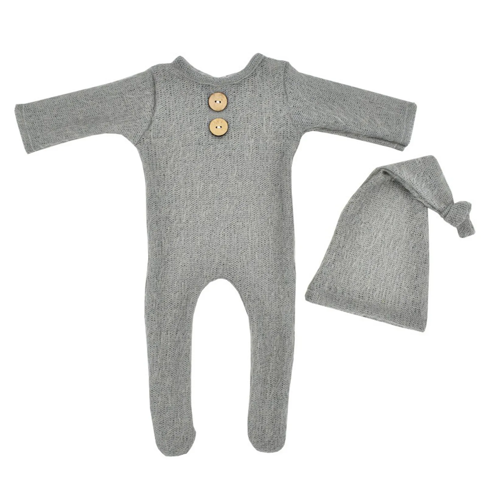 НоворожденныйФотография реквизит нога комбинезон пуговицы Вязаный комбинезон узел шляпа набор