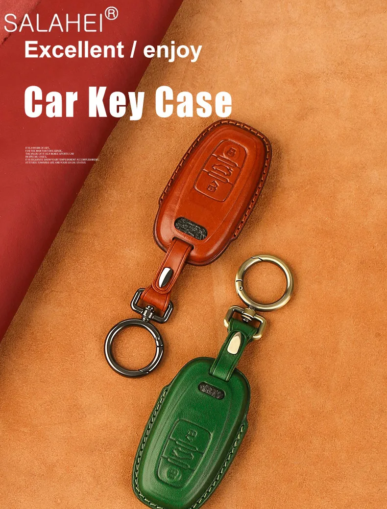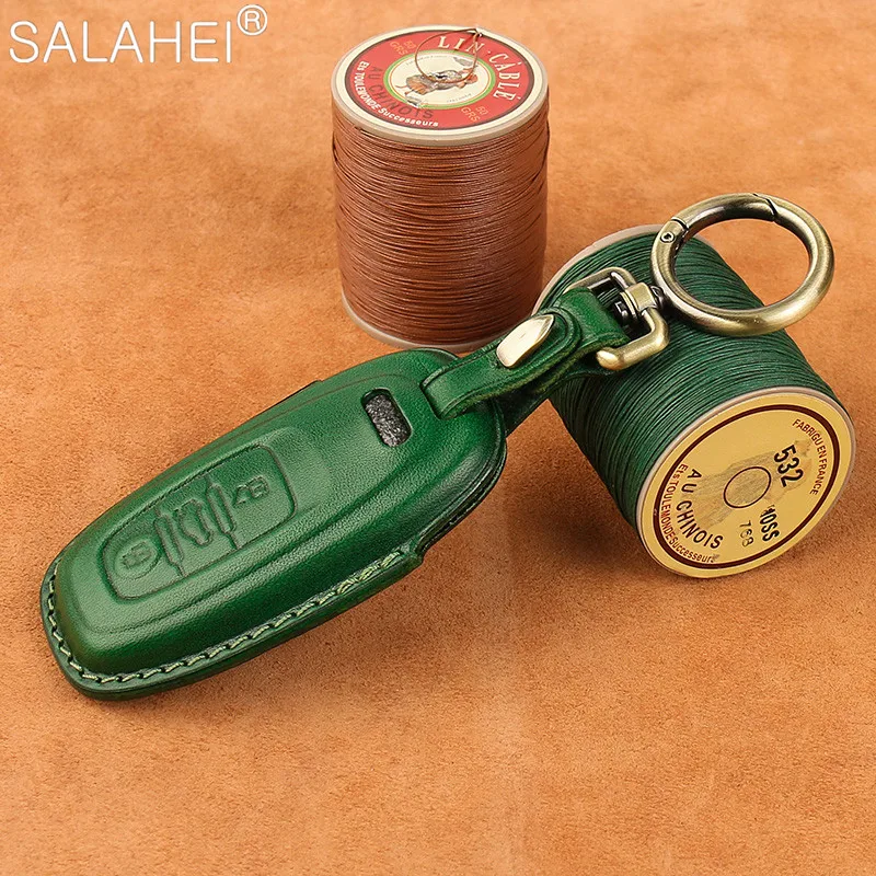 Кожаный чехол для автомобильных ключей с верхним слоем для Audi A1 A3 A4 A5 A6 A7 A8 S5 RS4 S3 Quattro Q3 Q5 Q7 TT 2009 2010 2011 2012 2013 2014 2015