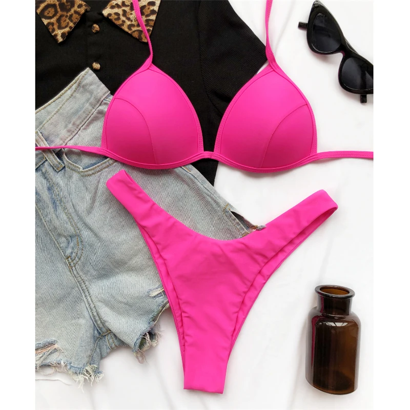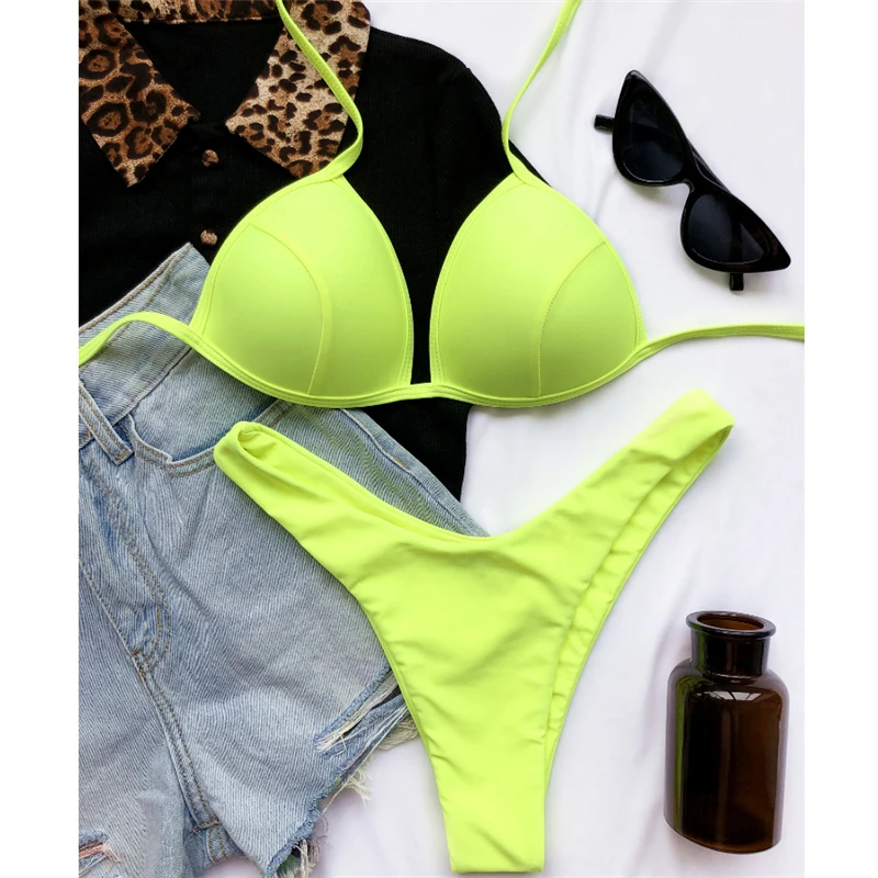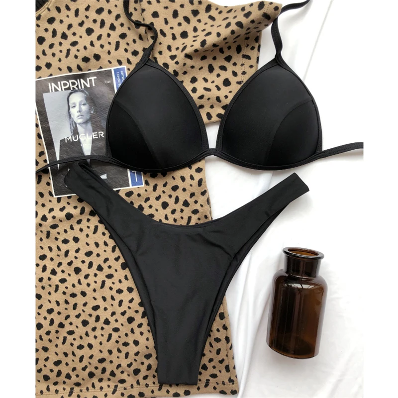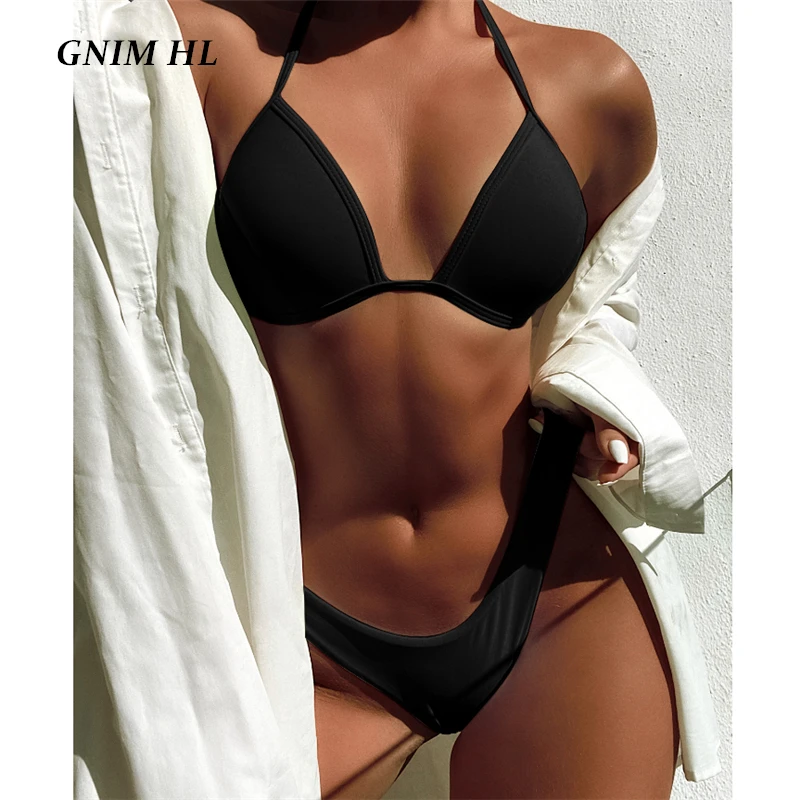 Сексуальное треугольное бикини GNIM, лето 2021, черный купальник, женский, пуш-ап, 2 штуки, с низкой талией, с высоким вырезом, бразильский купальник, бикини
