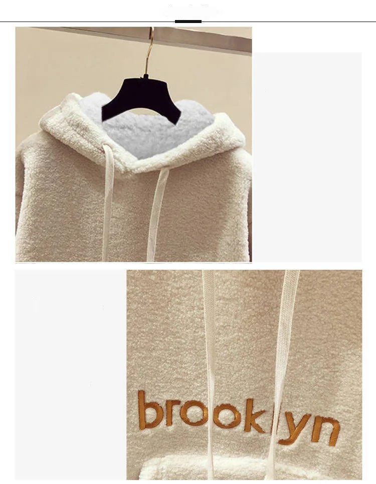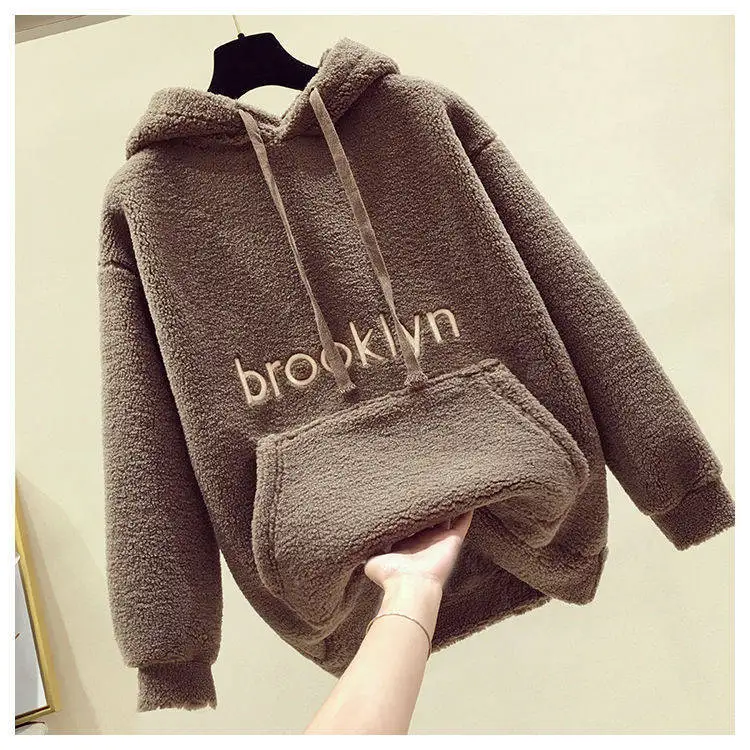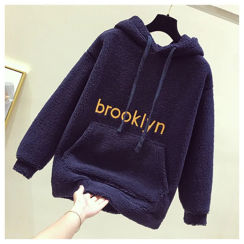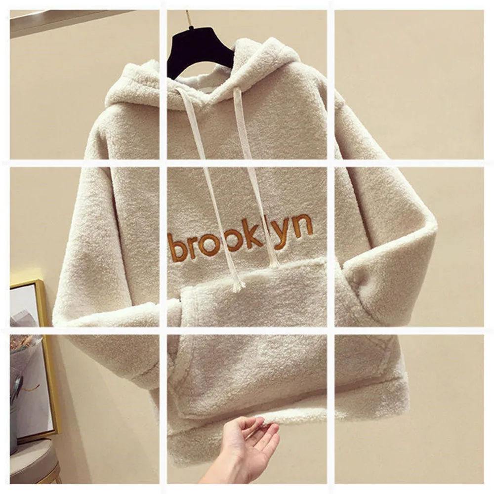 Овчина; Плюш; Женские ботинки; Сезон осень-зима 2020 новый корейский Стиль толстовки с капюшоном и длинными рукавами из хлопка теплые размера плюс свободные повседневные женские топы