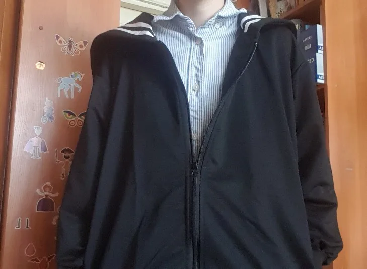 две недели - и посылка у меня!! давно хотел себе сейлор верх, и худи села на мне хорошо, только рукава коротковаты. по материалам тоже понравилась, всё аккуратноо сшито, приятная синтетика, тёплая.. мать на мне её увидела и сразу давай забирать Г_Г померила, ей тоже хорошо подошла.. будем теперь на двоих делить, вот так бывает!