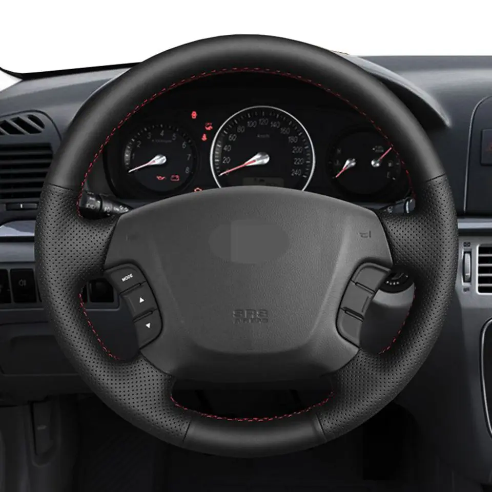 Для Hyundai Sonata 2(NF ) 2005-2009 Kia Carens 2007-2011 черного цвета из натуральной кожи чехол рулевого колеса автомобиля