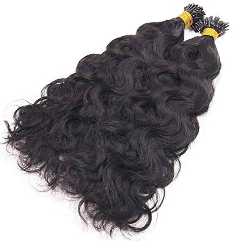 Бразильские натуральные волнистые накладные волосы с I-образным кончиком на всю голову, 100 прядей, волнистые человеческие волосы с кератином и I-образным кончиком