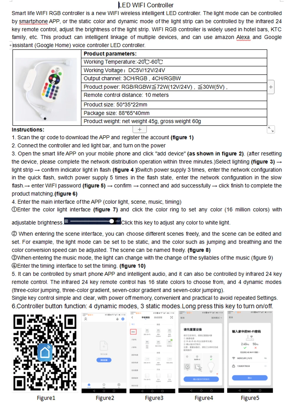 DC5-24V WIFI RGB контроллер 3CHRGB 4CHRGBW 5050 2835 Светодиодная л...