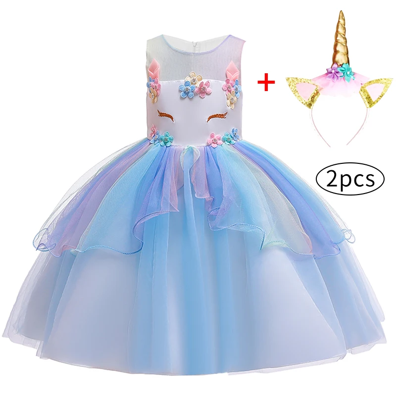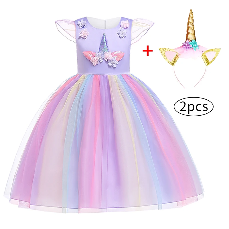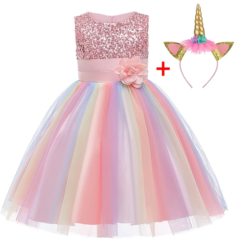 Летнее платье с единорогом для девочек 4, 6, 8, 10 лет, одежда для девочек, детвечерние принцессы на день рождения, детское платье с розовыми цветами для девочек