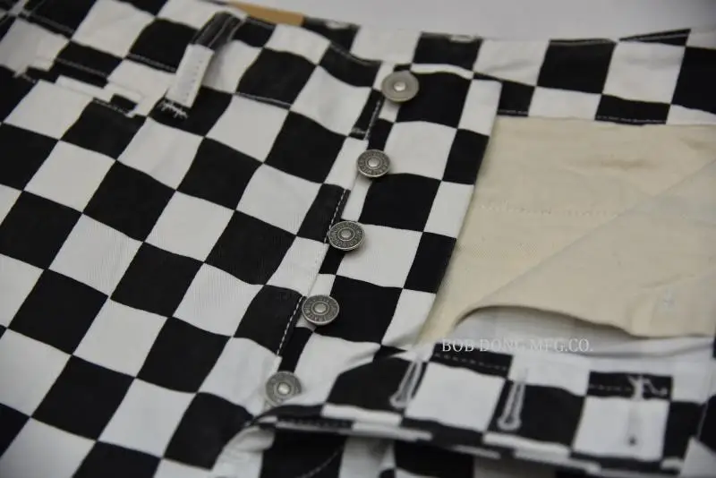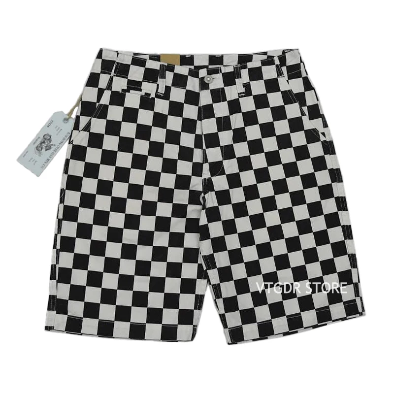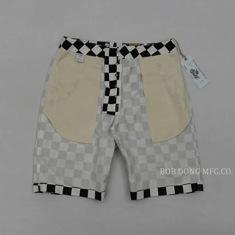 Шахматным принтом Боб DONG гоночный трек Стиль летние Для мужчин шорты черные и белые в клетку