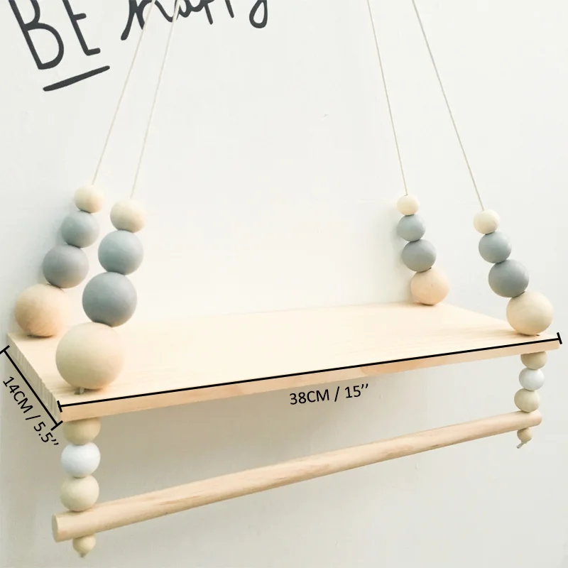 Деревянная полка в скандинавском стиле для детской комнаты, Настенная декоративная деревянная полка с бусинами, двухслойная стойка для пальто, органайзер, домашний декор