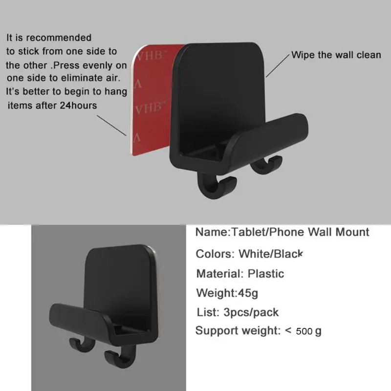 3x Универсальный держатель для мобильного телефона и планшета, настенная Подставка для iPad, iPhone, поддержка кабелей для хранения и домашняя вешалка с крючком
