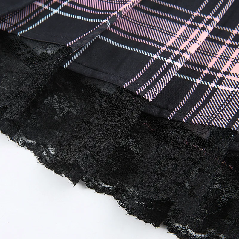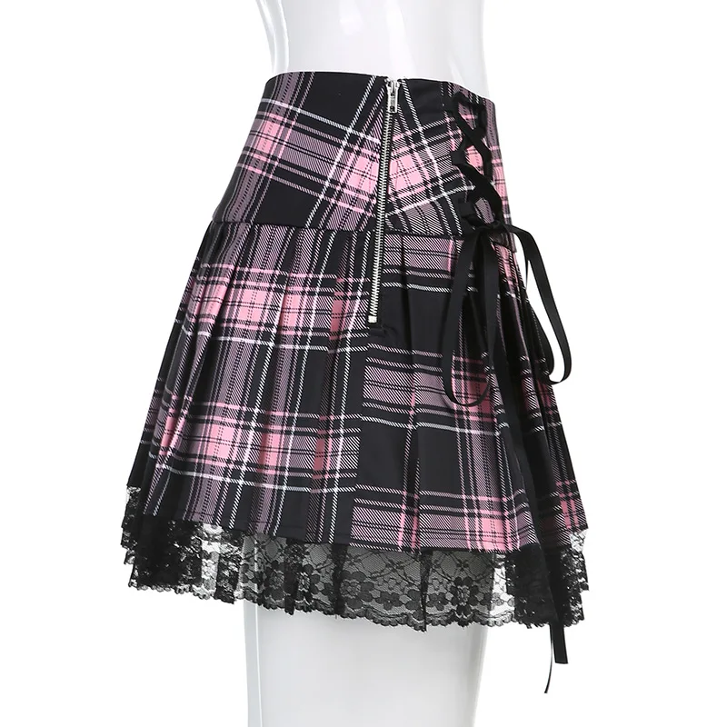 Женская юбка на шнуровке ALLUKASA Y2K, розовая клетчатая плиссирова...