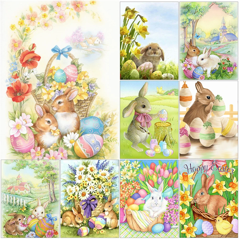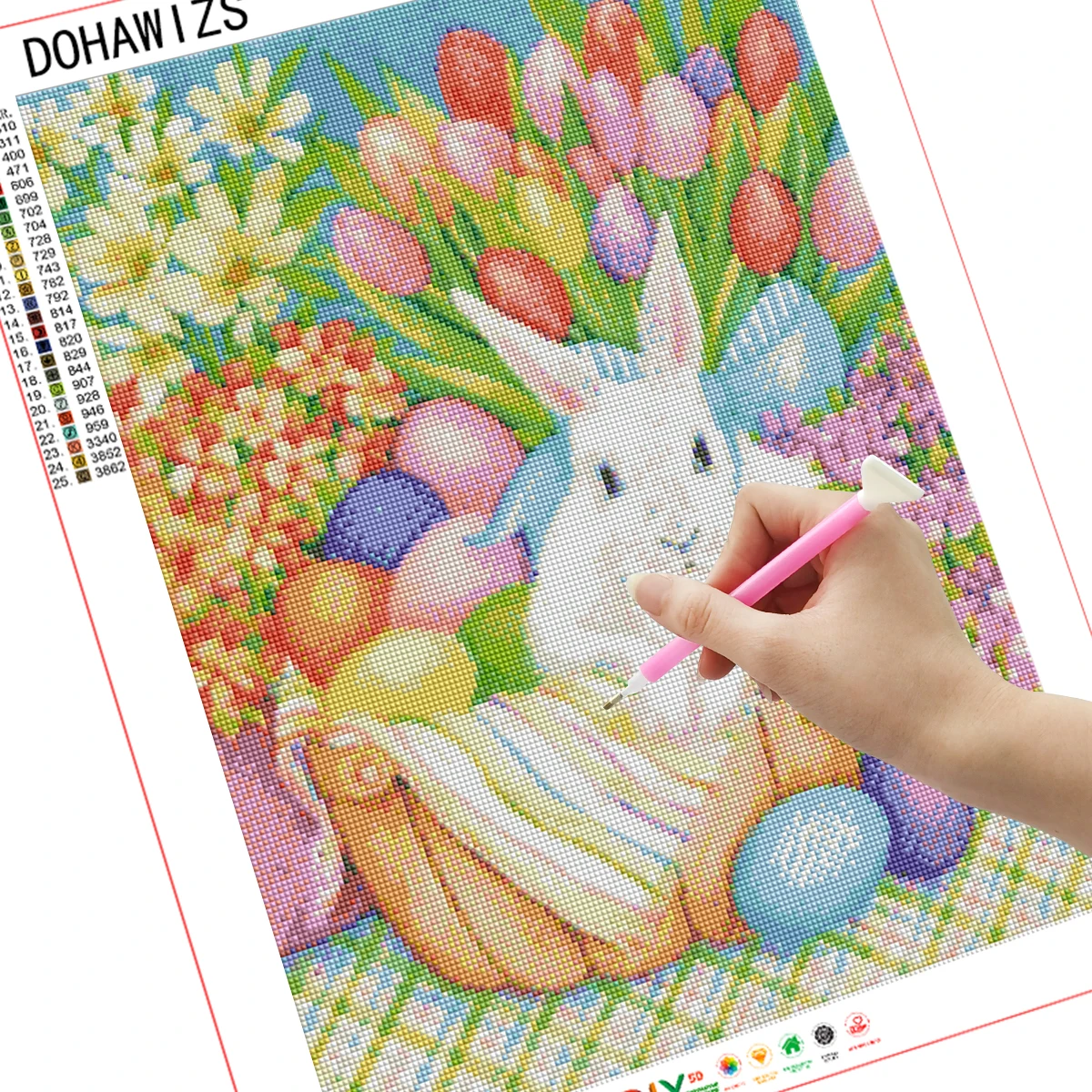 Алмазная картина 5D с пасхальными яйцами кролика, мозаика из страз ...