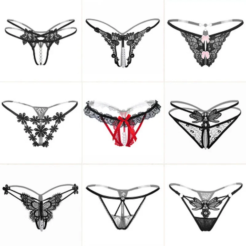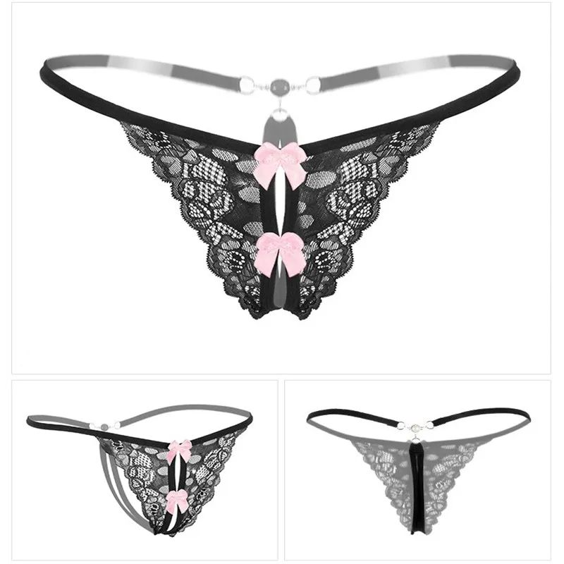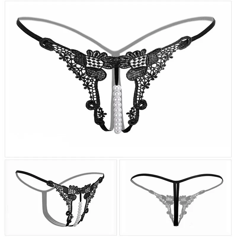 Женские кружевные трусики, стринги с жемчугом и открытой промежност...