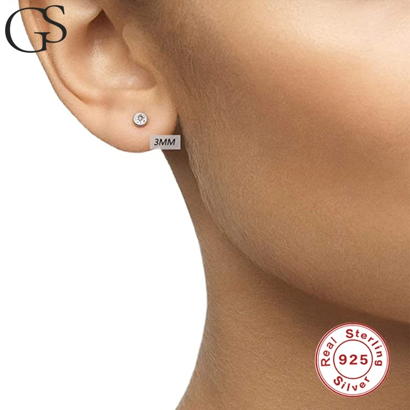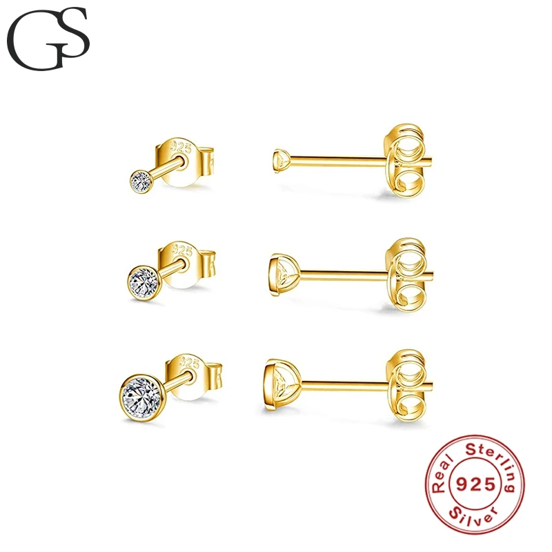 GS 3 шт циркониевые серьги, Стерлинговое Серебро 925 пробы, Серебряный пирсинг, серьги-гвоздики, серьги, светильник, Роскошные блестящие женские серьги, подарок на день Святого Валентина