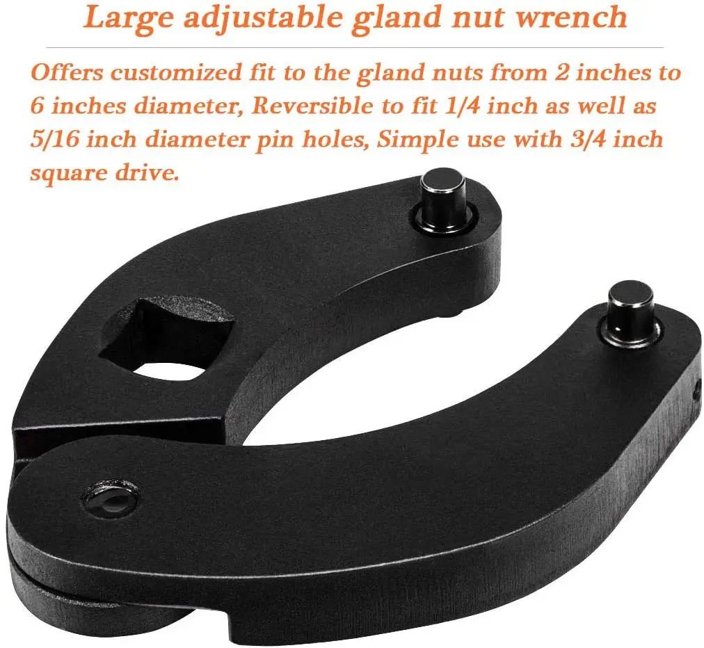 Регулируемые гаечные гнезда спроектированы для установки и работы с гидравлическими цилиндрами в строительстве и сельскохозяйственном оборудовании, а также транспортных средств с гаечными втулкамиБольшой регулируемый гаечный ключ с гаечным ключом обеспечивает индивидуальное прилегание к гаечным газам от 2 до 6 дюймов в диаметре, Реверсивный, чтобы соответствовать 1/4 дюйма, а также 5/16 дюймовым отверстиям диаметром, простое использование с квадратным приводом 3/4 дюймаМалый регулируемый гаечный ключ с гаечным ключом обеспечивает индивидуальное прилегание к гаечным газам от 1 дюйма до 3-3/4 дюйма в диаметре, Реверсивный, чтобы соответствовать 1/4 дюйма, а также 7/32 дюймовым отверстиям диаметром, простое использование с 1/2 дюймовым приводом храповикаТяжелый/светильник ручной работы. Больше не нужно рисковать повредить руки, ударив по упрямой гайкеГидравлический Цилиндр гаечный ключ с ЧПУ, высококачественная сталь и черная отделка для прочной и прочной отделки